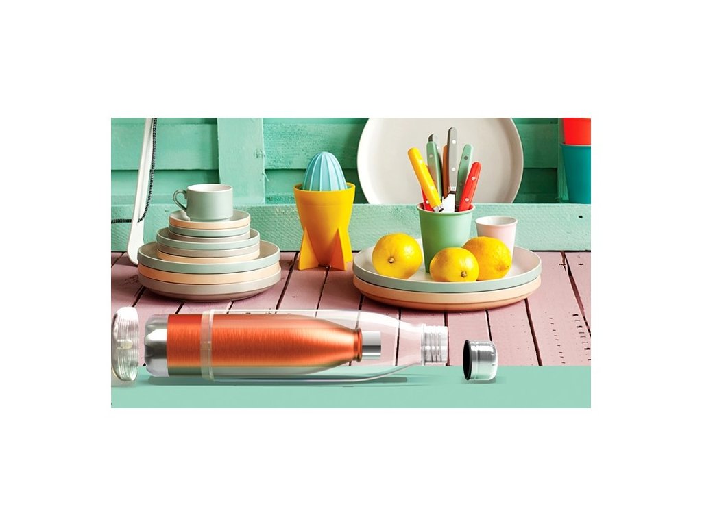 Praktická trendy termo láhev s termoizolační dvojitou stěnou, která udrží teplotu horkých i studených nápojů.