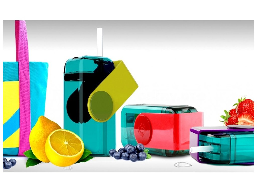 Praktický box na nápoje s patentovaným těsnícím uzávěrem a s brčkem.