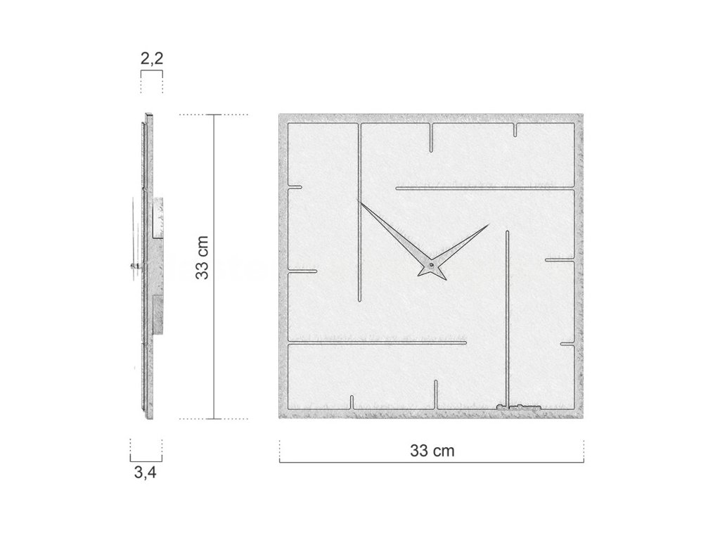 Moderní čtvercový tvar o rozměrech 33 × 33 cm působí minimalisticky a přitom výrazně, takže se hodiny snadno stanou stylovým doplňkem interiéru.