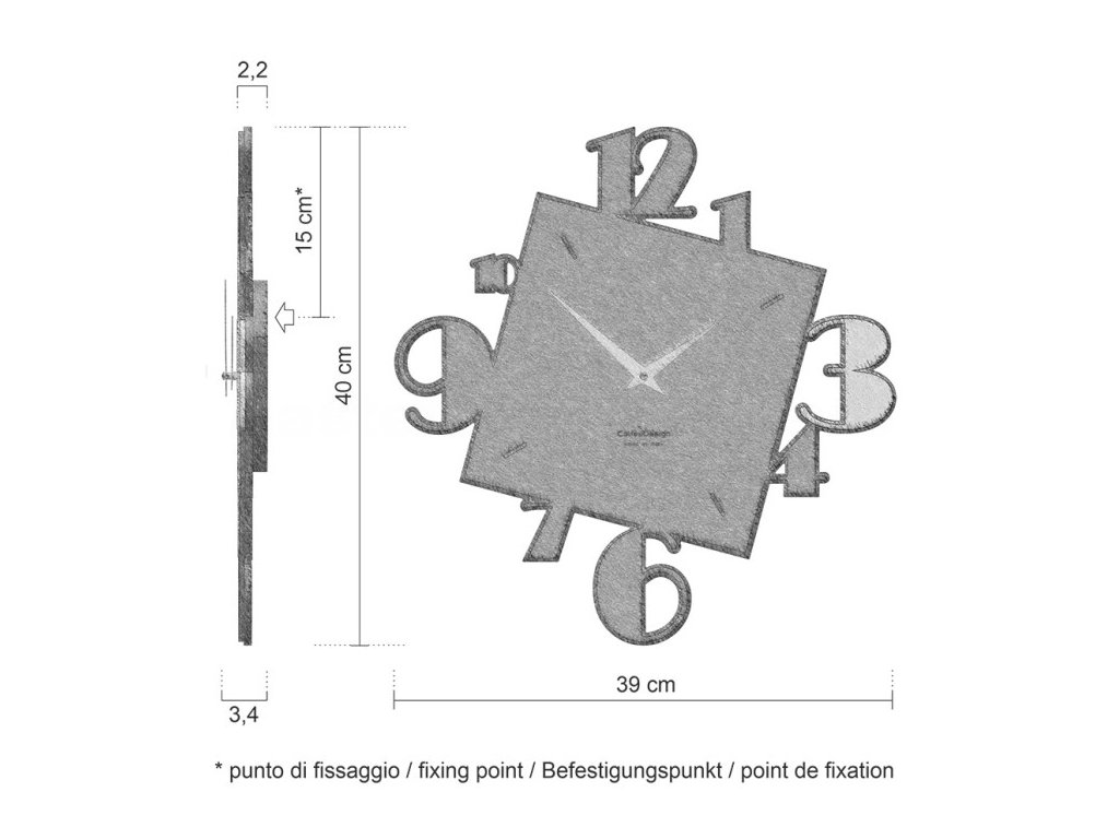 Díky rozměrům 40 × 39 cm se hodiny hodí jako stylový doplněk do obývacího pokoje, pracovny nebo designové kanceláře.