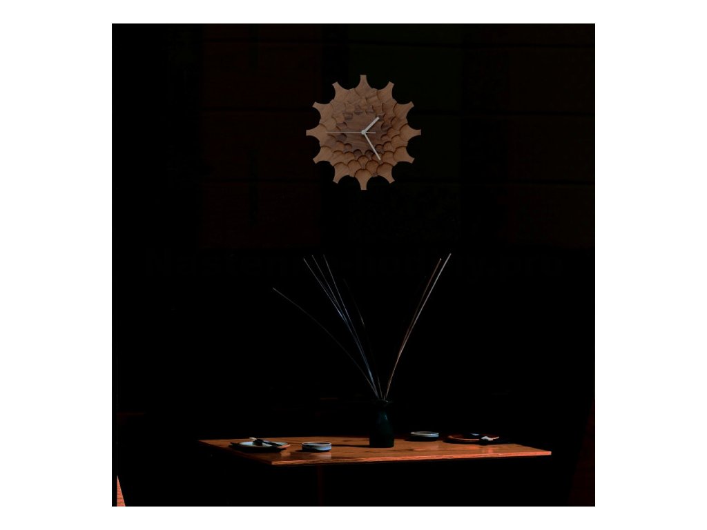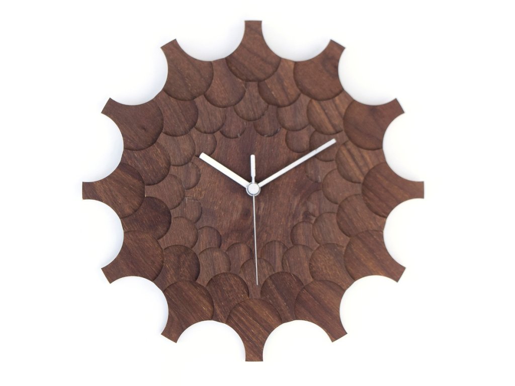 Hodiny jsou vyrobeny z kvalitních březových desek s přirozenou kresbou dřeva, která věrně imituje vzhled masivního dřeva. Materiál je dostupný v přírodní podobě nebo v barevných variantách, upravený ekologickými barvami nejvyšší kvality.