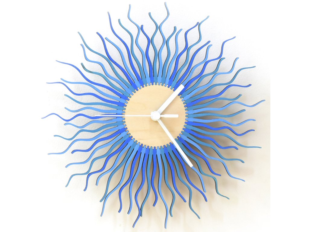 Ciferník a paprsky jsou vyřezány laserem z březové překližky o tloušťce 6 mm. Po vyřezání jsou paprsky ručně broušeny, malovány a následně upevněny ke středovému disku. Povrchová úprava zdůrazňuje přirozenou kresbu dřeva.