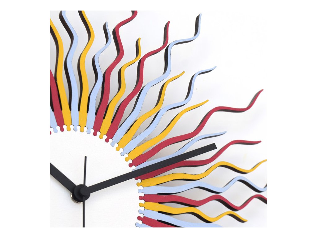 Designové hodiny Ardeola Medusa Meadow vynikají originálním starburst/sunburst designem inspirovaným řeckou mytologií. Paprsky symbolizují hady z hlavy bájné Medúzy, tentokrát však v optimistické barevné kombinaci bílé, modré, červené a žluté, která vnese do interiéru radost a pozitivní energii.