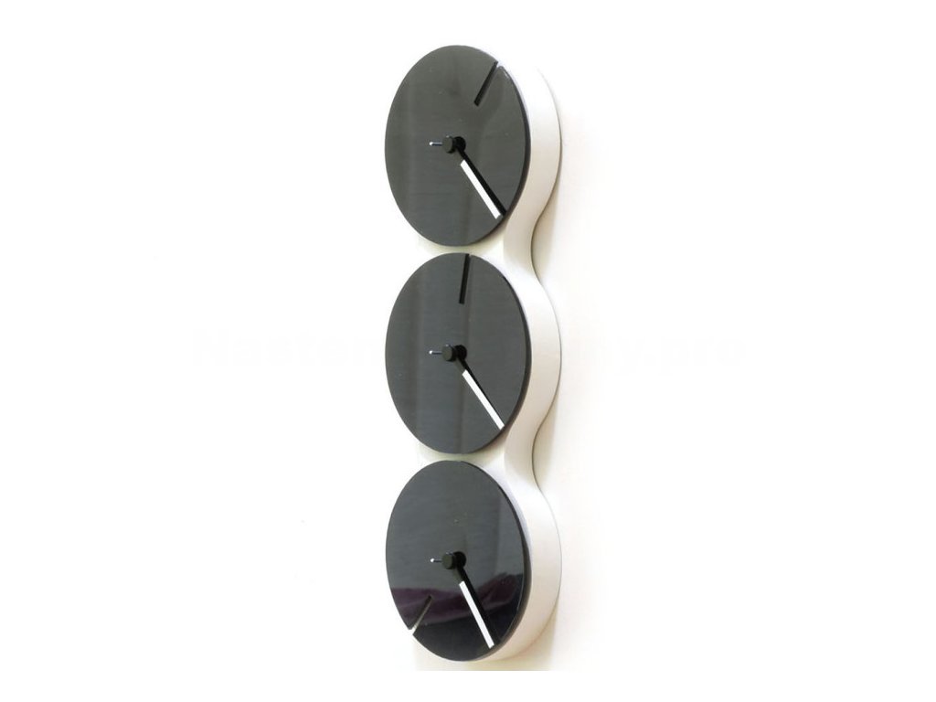 Designové hodiny Ardeola New York / Rio / Tokyo představují originální pojetí světových hodin, které dokáží současně zobrazit čas ve třech různých časových pásmech. Minimalistický design vyniká kombinací černého lesklého akrylového ciferníku a bílé dřevěné skříně, která zakrývá celý mechanismus a elegantně přiléhá ke zdi.