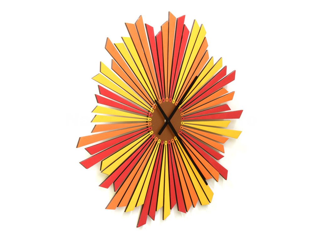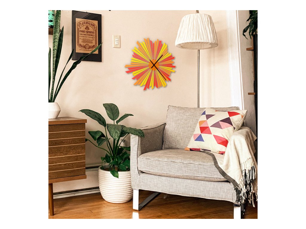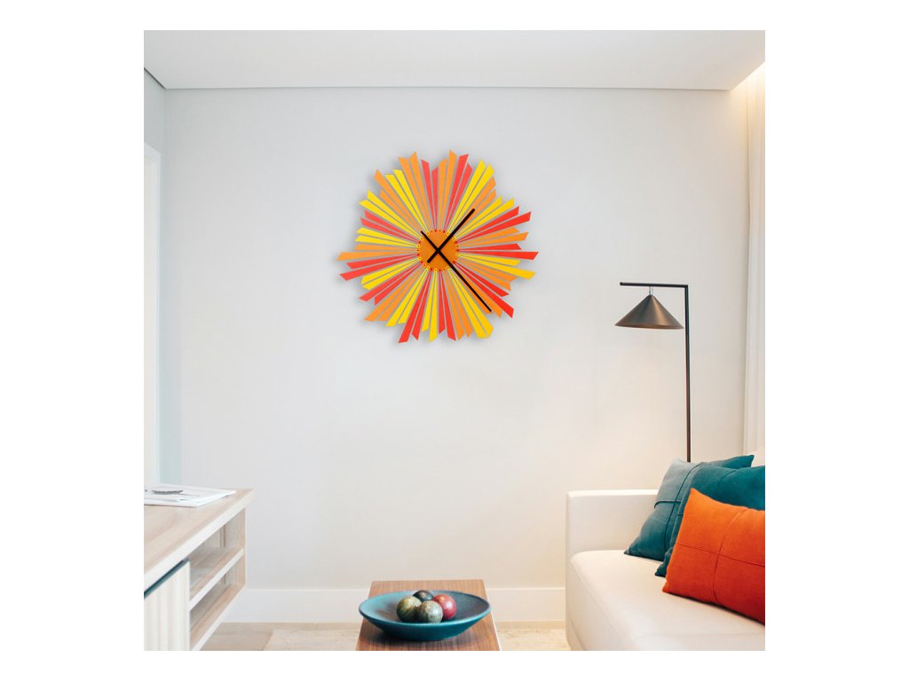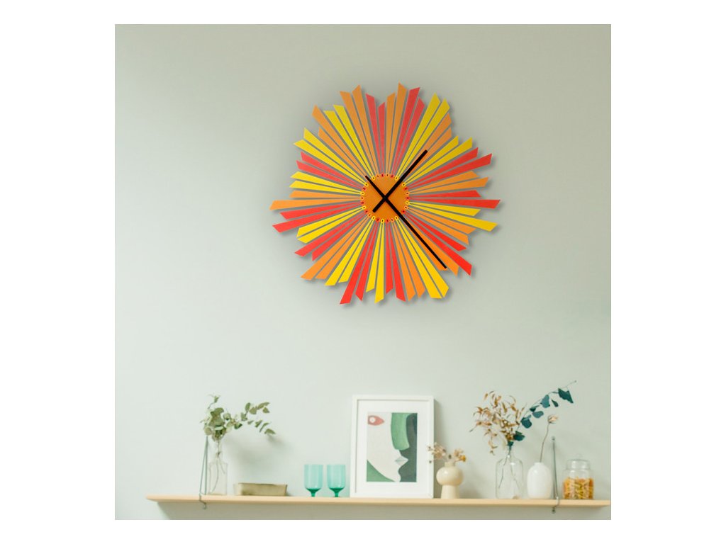 Designové hodiny Ardeola Setting Sun přinášejí do vašeho interiéru energii večerního slunce. Jejich paprsky v kombinaci červené, oranžové, žluté a zlaté připomínají barevné nebe těsně před západem slunce a dodají prostoru příjemnou atmosféru.