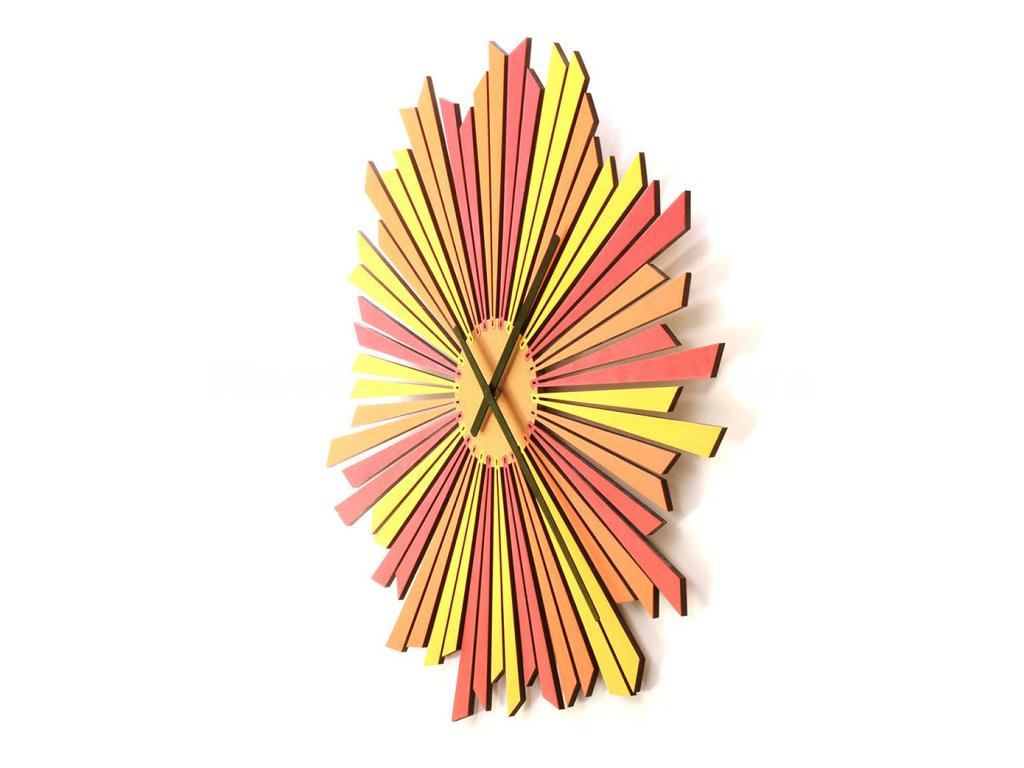 Designové hodiny Ardeola Setting Sun XL vyzařují energii a teplo večerního slunce. Paprsky v odstínech červené, oranžové, žluté a zlaté připomínají nebe před západem slunce a dodávají interiéru útulnou a jedinečnou atmosféru.