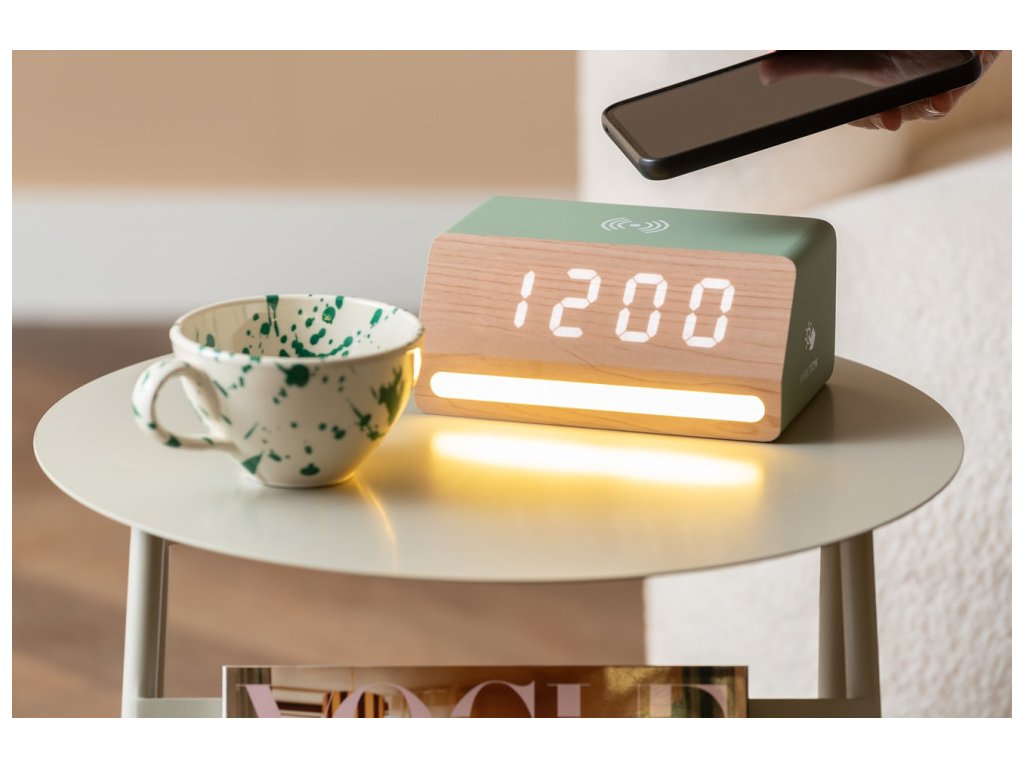 LED hodiny-budík 6078GR Karlsson s nabíječkou smartphonů 16cm
