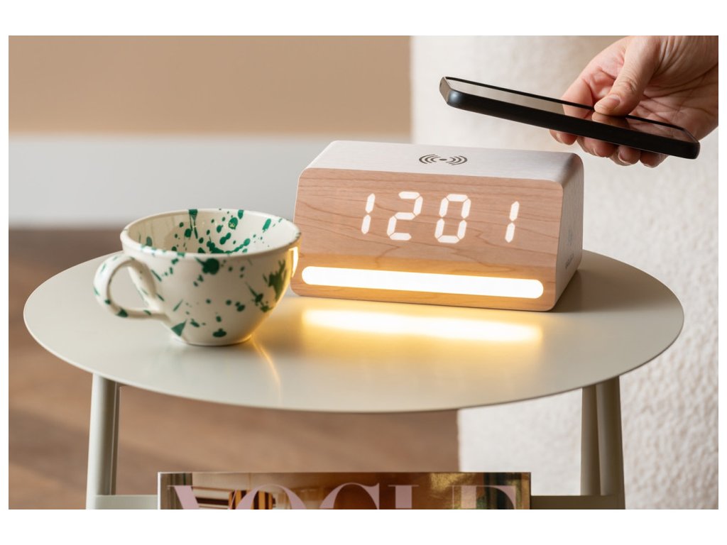 LED hodiny-budík 6078WH Karlsson s nabíječkou smartphonů 16cm