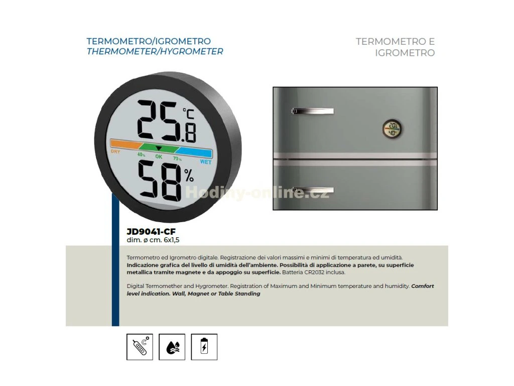 Magnetický digitální teploměr s vlhkoměrem JD9041 Lowell 6cm